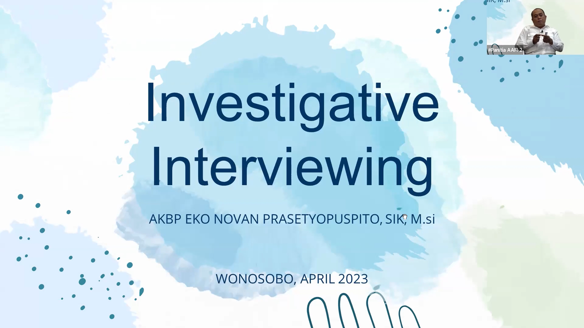 Berdasarkan fakta tersebut, Asosiasi Auditor Forensik Indonesia (AAFI WERI) menggelar webinar bertajuk Investigative Interviewing I yang menghadirkan Bapak AKBP Eko Novan Prasetyopuspito, S.I.K, M.Si. (Kepala Kepolisian Resort Wonosobo) sebagai Narasumber dan Ibu Yezie Dwi Gumay Putri, S.Psi., M.Psi., CMTNLP (Asesor Assosiate PLN) selaku Moderator.